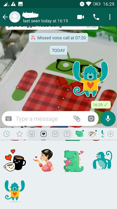 Setelah ter-update, lalu cek di deretan Emoji dan GIF, apakah sudah muncul ikon Sticker. Jika belum, lakukan restart ponsel. Selanjutnya buka aplikasi WhatApp. Di deretan bawah akan muncul Emoji, Gif dan Sticker.
