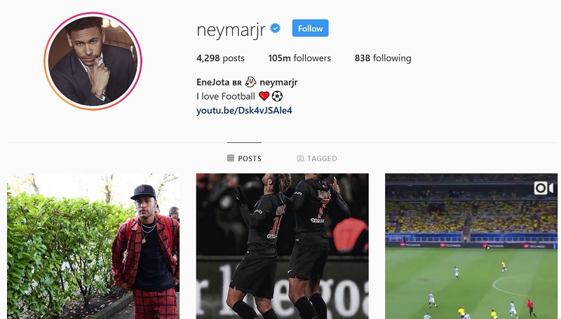 Jumlah foto upload-an striker PSG ini terbukti lebih banyak ketimbang CR7. Sebagaimana CR7 foto keluarga lebih banyak direspon (like dan komen). Salah satu foto Neymar ketika masih remaja, berperawakan kurus jangkung mendapat like sampai 4,1 juta lebih.