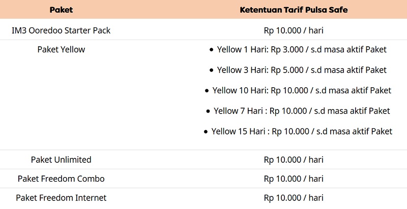 Pulsa Safe secara otomatis dapat digunakan jika pelanggan mengaktifkan kartu perdana IM3 Ooredoo, melakukan registrasi atau perpanjangan bagi pembeli paket Yellow, paket Unlimited, paket Freedom Combo, dan paket Freedom Internet.