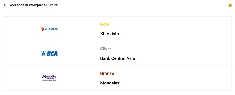 Tahun 2019, XL Axiata merebut juara 1 di kategori Workplace Culture. Penghargaan ini menunjukkan bahwa XL Axiata merupakan operator sekaligus perusahaan pada umumnya yang mampu menujukkan budaya kerja dan tempat kerja terbaik.