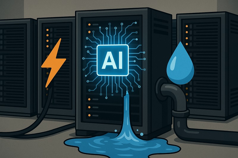 Membuat cip komputer canggih yang dibutuhkan untuk menjalankan program AI membutuhkan banyak daya dan air. Permintaan akan layanan AI generatif juga berarti peningkatan jumlah pusat data yang mendukungnya.