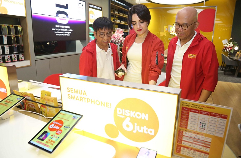 Hendri Mulya Syam, Chief Sales & Distribution Officer Indosat Ooredoo, Radhia Bendifi, Group Head Retail & Device Management dan Edi Riyanto, Head of Region Jabotabek