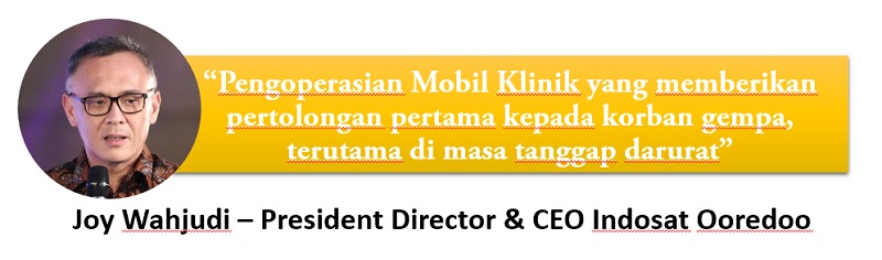 “Indosat Ooredoo turut berduka cita dan prihatin atas musibah bencana alam gempa bumi dan tsunami di wilayah Palu, Donggala dan sekitarnya. Upaya pertama yang kami lakukan adalah melakukan berbagai upaya pemulihan layanan dan jaringan yang terdampak, mengingat komunikasi dibutuhkan pada saat-saat genting setelah gempa. Disusul kemudian dengan pengoperasian Mobil Klinik yang memberikan pertolongan pertama kepada korban gempa, terutama di masa tanggap darurat yang masih berlangsung saat ini. Selanjutnya kami juga menyediakan layanan telekomunikasi gratis agar masyarakat yang terdampak dapat menghubungi dan memberi kabar kepada sanak saudaranya. Kami berharap kondisi segera berangsur baik dan masyarakat dapat segera menjalankan aktivitas normal kembali,” ujar Joy Wahjudi, President Director & CEO Indosat Ooredoo.