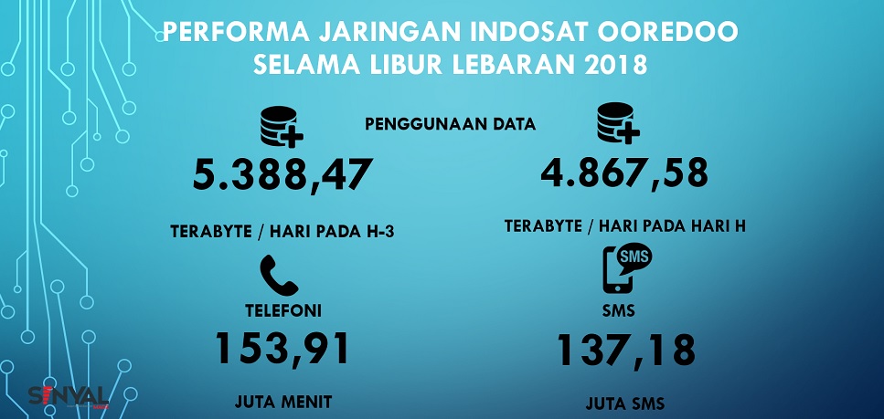 Indosat Ooredoo mencatat peningkatan traffic tertinggi untuk penggunaan Data adalah pada puncak arus mudik atau bertepatan dengan H-3 Lebaran sebesar 5.338,47 Terabyte/hari, atau naik 49,70% dibandingkan traffic Data reguler pada hari biasa. Sementara itu, penggunaan Data pada hari raya Idul Fitri 1439H sebesar 4,867.58 Terabyte/hari atau meningkat 73.03% dibandingkan tahun lalu. Hal tersebut sejalan dengan tren penggunaan social media yang semakin meningkat, baik sebagai hiburan saat menemani perjalanan mudik maupun untuk berkomunikasi dengan kerabat.
