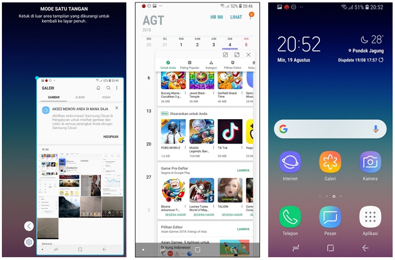 Melengkapi berbagai aplikasi milik Samsung, Galaxy A8 Star juga menyediakan mode pengaturan tampilan pada layar. Misalnya saja Mode Satu Tangan yang amat membantu ketika mengoperasikan ponsel dengan satu tangan. Mode Multi Layar mengajak Anda hendak bekerja dengan beberapa aplikasi atau fungsi di layar. Sedangkan Mode Simple menyederhanakan tampilan dengan beberapa menu saja. Ini penting bagi Anda yang tak suka dengan banyak menu tampil di layar.