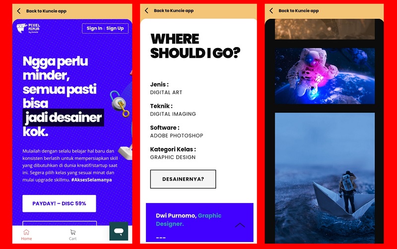 Pixel Ninja menambah pilihan namun memang untuk sementara waktu Anda harus menggunakan kocek untuk mengikuti materi. Jangan khawatir, saat ini Kuncie memberikan diskon untuk sejumlah materi pembelajaran.