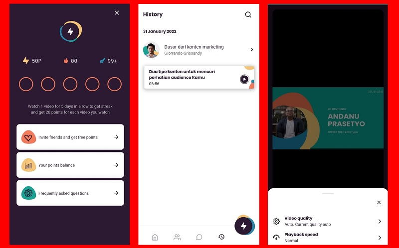 Pengoperasian Kuncie yang mudah ditambah lagi dengan video yang tidak kenal buffering, apa lagi lag. Lancar, smooth, audionya pun amat jelas. Dengan perpaduan ini, membantu Anda serius mendalami materi.