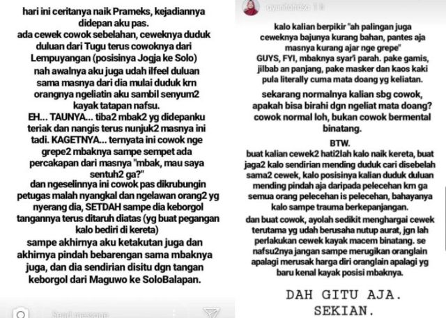 Dilansir dari Twitter NEG (@negativisme), kasus pelecehan seksual di Prameks ini dibagikan oleh pemilik akun Instagram @ayunitafrdsa melalui Instastory.