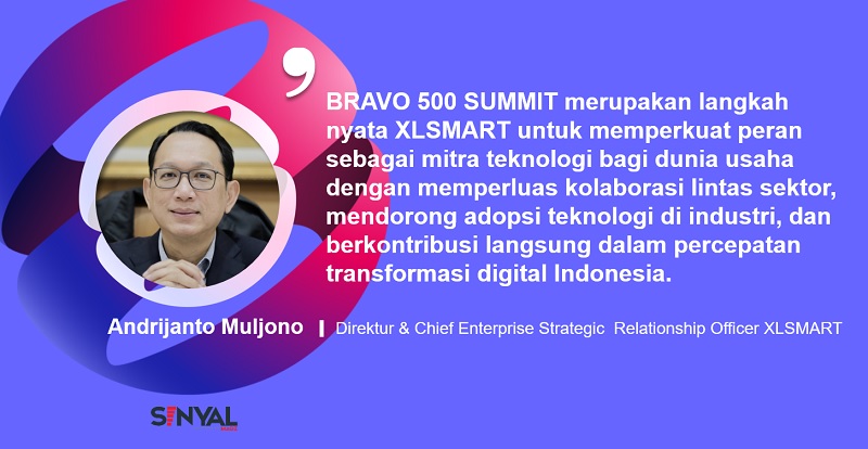 Direktur & Chief Enterprise Strategic Relationship Officer XLSMART, Andrijanto Muljono mengatakan, “Transformasi digital yang pesat melalui teknologi seperti AI, IoT, cloud, dan cybersecurity merupakan hal yang tak terhindarkan di berbagai industri di dunia termasuk di Indonesia karena telah mengubah cara bisnis yang dijalankan. BRAVO 500 SUMMIT merupakan langkah nyata XLSMART untuk memperkuat peran sebagai mitra teknologi bagi dunia usaha dengan memperluas kolaborasi lintas sektor, mendorong adopsi teknologi di industri, dan berkontribusi langsung dalam percepatan transformasi digital Indonesia.”