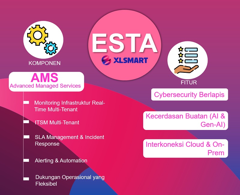 Salah satu komponen utama dari ESTA adalah Advanced Managed Services (AMS), yaitu layanan operasional multi tenant yang proaktif dan terintegrasi penuh dalam platform.