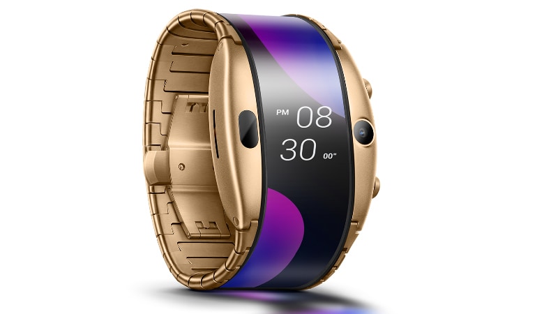 Smartwatch ini memang tak bergaya ala arloji umumnya. Posturnya terkesan sangat futuristik. Ditambah layar fleksibel berukuran 4 inci diagonal.