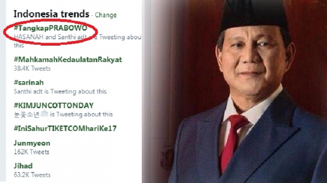 Tagar #TangkapPRABOWO Jadi Trending Topic Dunia