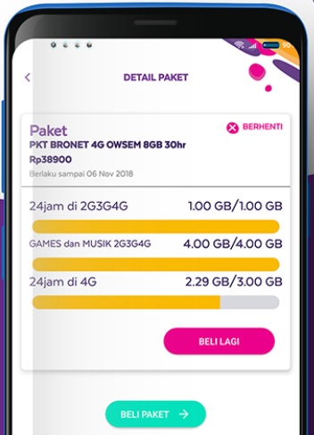 Pengguna dapat mencek jumlah kuota tersisa. Bahkan melakukan transfer pula, isi ulang, aktivasi paket, hingga memantau pemakaian internet secara realtime.