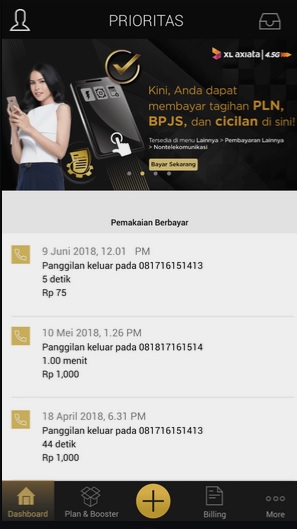 Berikut ini 5 hal utama yang disajikan dalam aplikasi MyXL Postpaid pelanggan XL Prioritas;