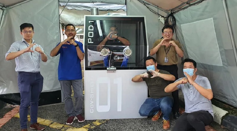 Terinspirasi oleh stasiun pengujian COVID-19 seperti bilik telepon buatan Korea Selatan, seorang CEO perusahaan pemasok papan iklan Vortex Media bernama Kenneth Lim dan teman-temannya terinspirasi untuk membuat model yang sama.