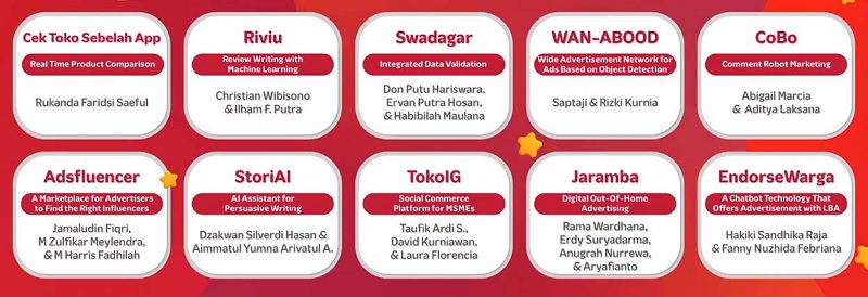 Dewan juri memilih Cek Toko Sebelah App (juara 1) dengan ide Real Time Product Comparison, TIM Deadliner (juara 2) dengan ide Comment Robot Marketing, dan StoriAl (juara 3) dengan ide AI Assistant for Persuasive Writing. Mereka berhak mendapatkan hadiah dan membuka peluang kolaborasi dengan Telkomsel DigiAds dalam tahapan proses inkubasi dan akselerasi selanjutnya.