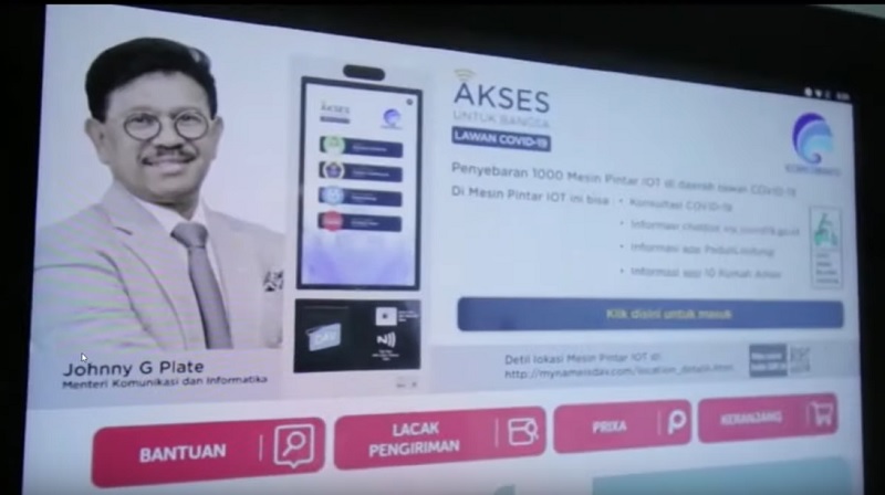 Sebanyak 1.000 mesin pintar IoT itu disebarkan di lokasi strategis ritel misalnya Alfamart, Alfamidi dan Apotek Kimia Farma serta berbagai toko lainnya. Menurut Menteri Johnny mesin pintar berperan menjangkau Online to Offline (O2O) di area rawan Covid-19.
