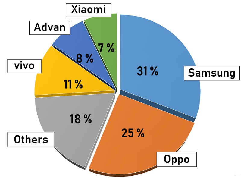 WWW.SINYALMAGZ.COM – Peta market share brand smartphone di Indonesia tampak mulai berubah. Meskipun Samsung masih menduduki nomor satu, namun kian terkejar oleh brand lain. Lihat saja bagaimana Oppo yang berada di posisi dua, terpaut sedikit dengan Samsung.