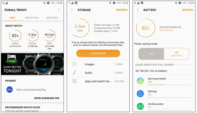 Menu yang ditawarkan antara lain, memilih watch face yang koleksinya cukup beragam. Ada beberapa yang harus berbayar. Selain itu, Anda juga mencek indikator baterai di Galaxy Watch, atau membeli beberapa aplikasi yang ingin Anda sisipkan di Galaxy Watch.