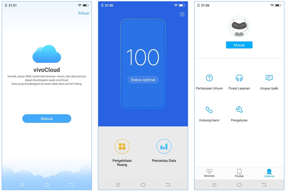 Kemudian, selain vivoCloud untuk penyimpanan, performa perangkat juga dapat didiagnosa maupun disehatkan dengan aplikasi i Manager. Lantas ada aplikasi EasyShare yang cukup cerdas. Perannya selain memungkinkan untuk memindahkan data dari ponsel lama, juga moda untuk saling berbagi dengan rekan-rekan se-peer.
