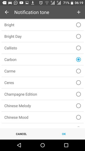 Tentukan nada pemberitahuan pada menu Notification tone, selain itu bisa juga mengatur notifikasi dengan vibrasi dan pop up.