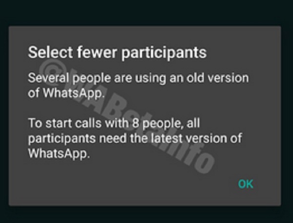 Nah, WhatsApp tak mau kalah setelah WhatsApp Video Call bisa digunakanoleh empat orang, kini bisa dua kali lipatnya alias delapan orang. Namun untuk bisa menggunakan hal ini, setiap orang yang hendak ikut ber-video call harus meng-update aplikasi WhatsApp-nya.